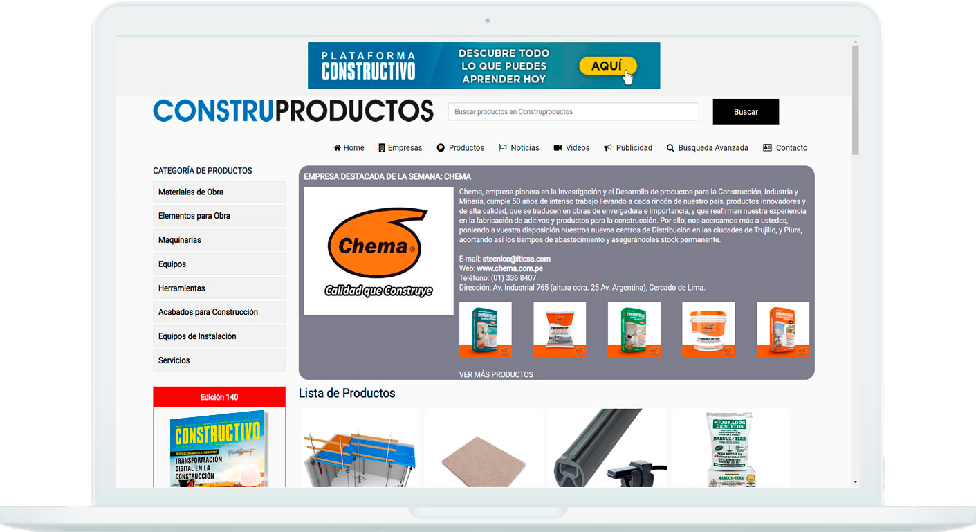 Si quiere que su empresa estén en CONSTRUPRODUCTOS y llegar a compradores de las principales obras a nivel nacional, forme parte de nuestra Plataforma.
